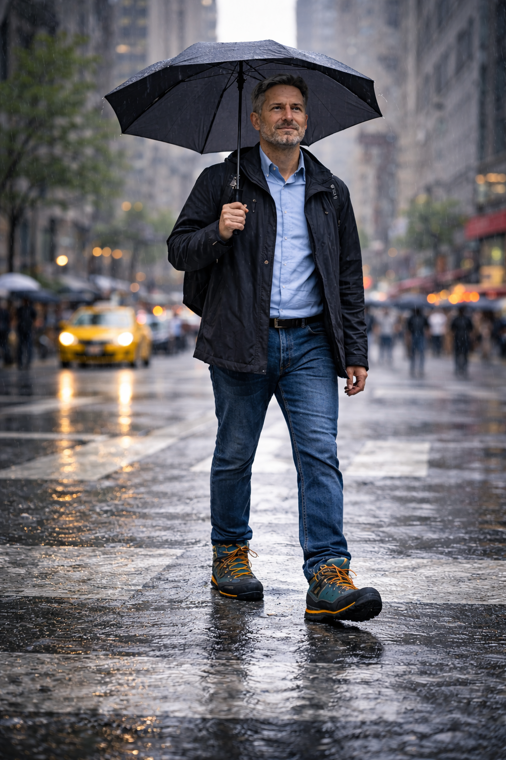 WeatherShield Breathe™ solves this with advanced hydrophobic microfiber and membrane technology. The upper repels water from rain and puddles while allowing foot moisture vapor to escape, keeping your feet dry and comfortable in any weather. This prevents blisters, eliminates that swampy feeling, and maintains perfect temperature regulation whether you're hiking through morning dew or afternoon thunderstorms. Your feet stay comfortable from sunrise to sunset.