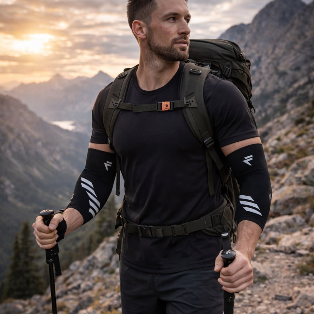 Le pli du coude est l'une des zones du corps où la transpiration est la plus importante. Le néoprène générique crée un effet de serre : votre bras surchauffe, la transpiration s'accumule, le tissu devient glissant et, soudain, le manchon glisse à nouveau. La chaleur provoque le glissement. Le glissement provoque l'échec. L'échec provoque l'abandon.