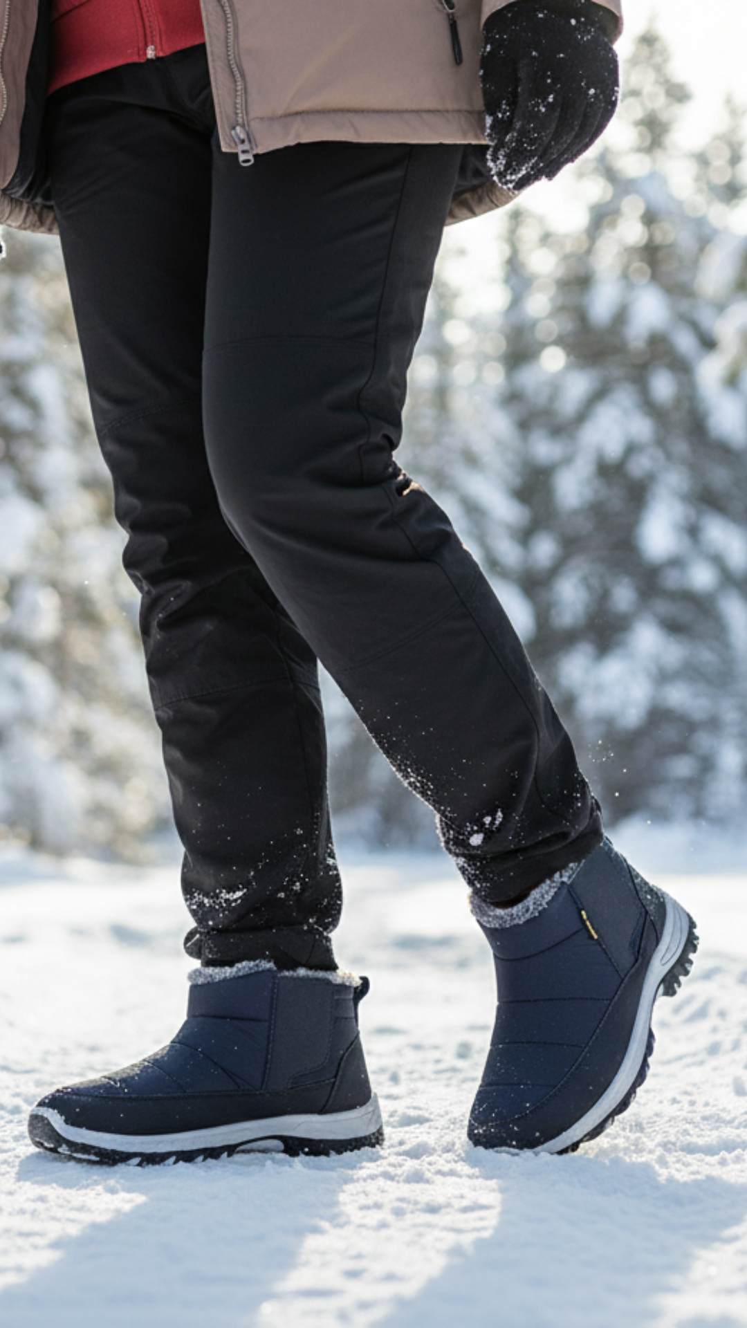 They are designed for outdoor use and sports. Their structure seems to offer good protection against the elements while remaining flexible enough to allow for active walking in the snow.