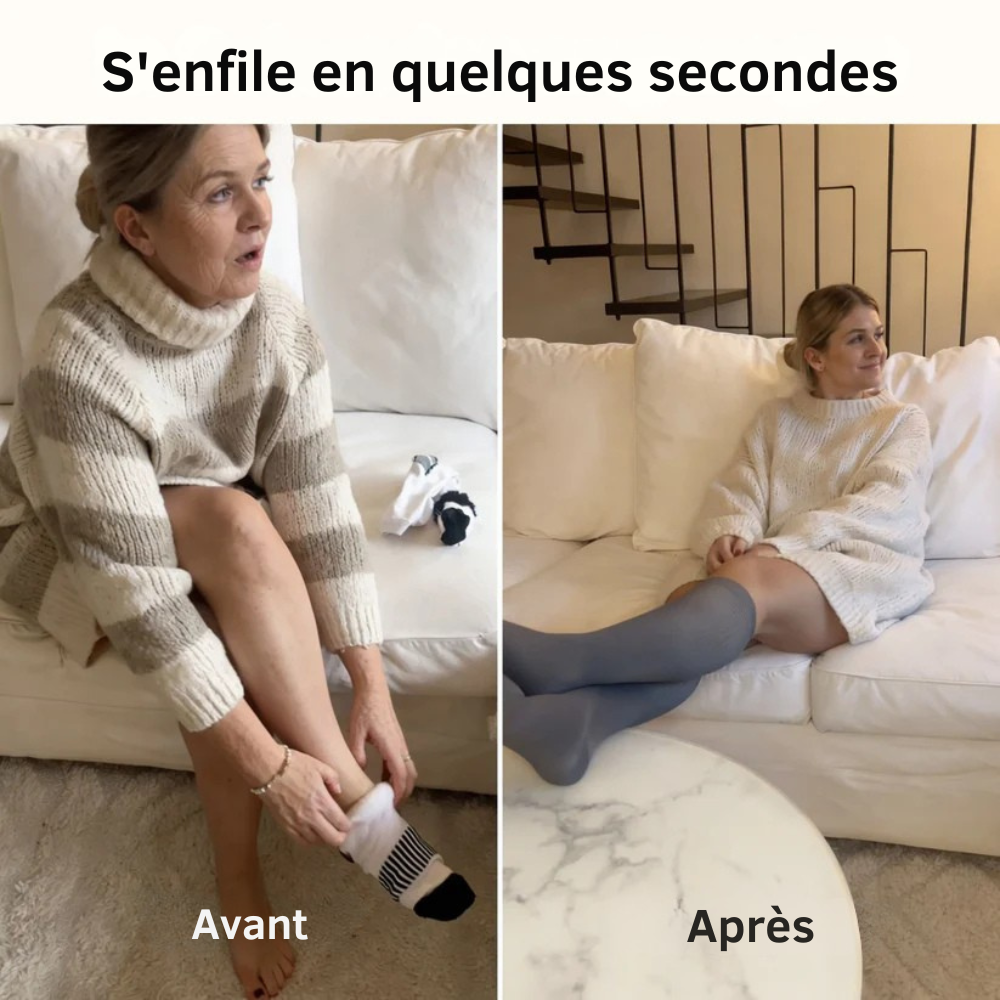 Des jambes visiblement plus légères dès le premier jour, discrètes sous tous les vêtements et si confortables qu'on oublie qu'on les porte - jusqu'à ce qu'on réalise à quel point les jambes sont détendues.