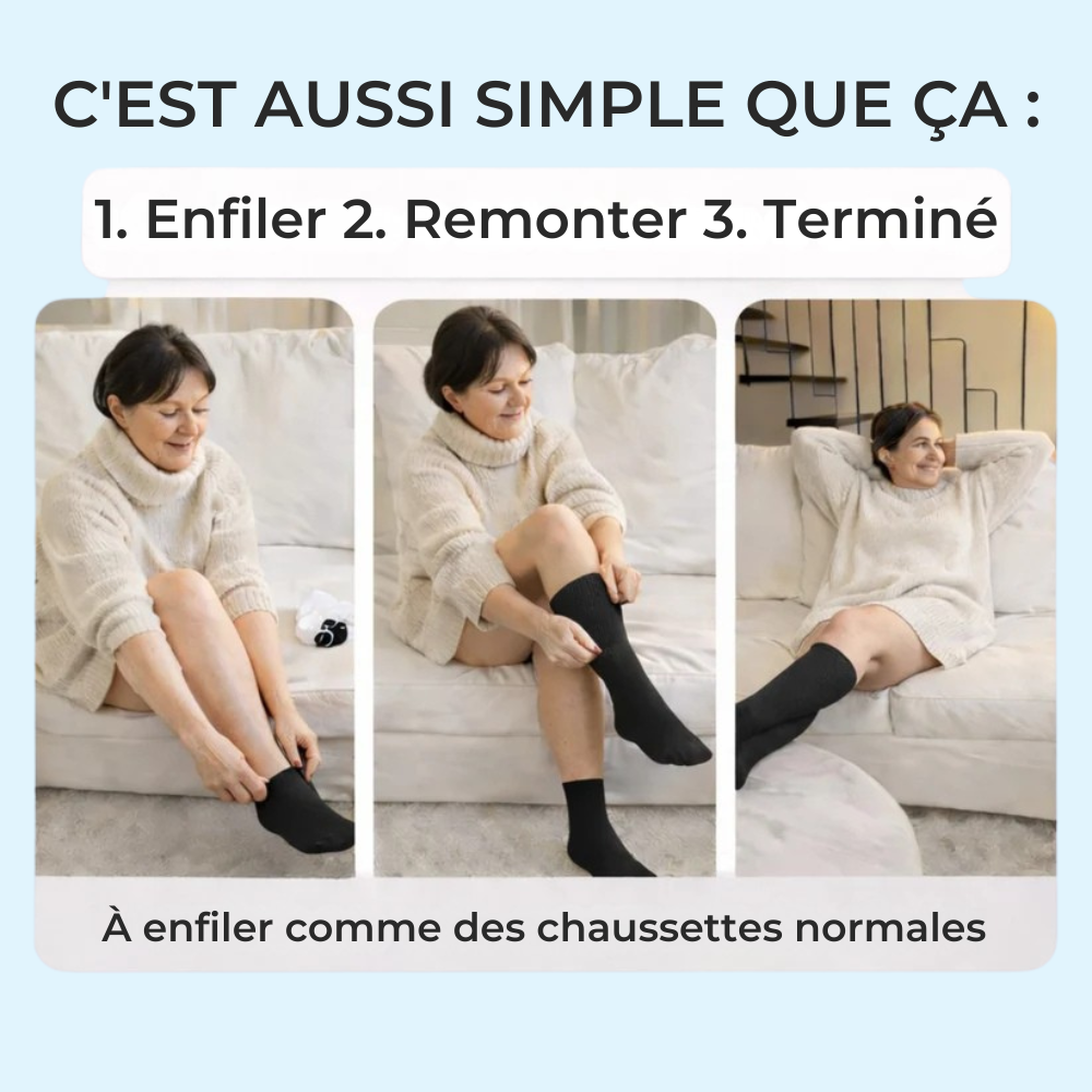 Conseil : Enfilez-les le matin – vos jambes sont souvent moins gonflées à ce moment-là.