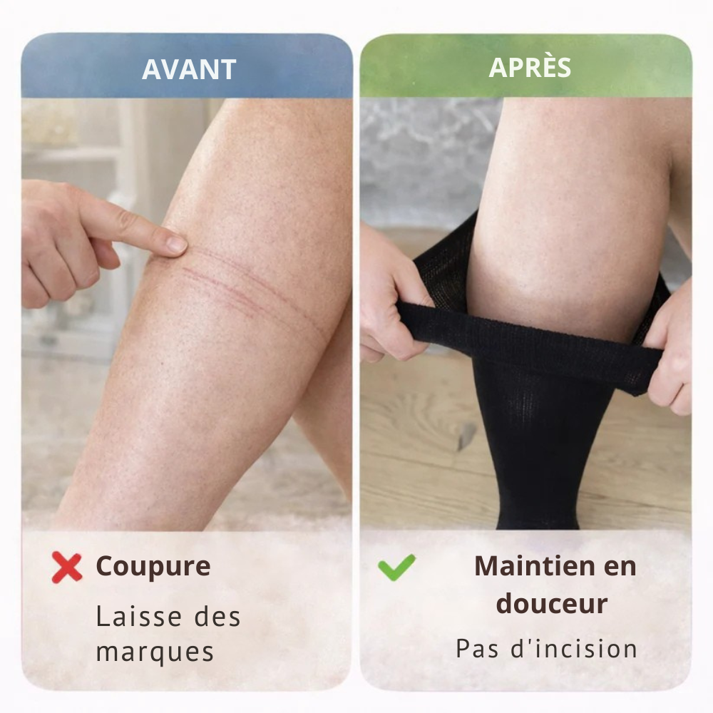 Les bas de contention Mevery sont conçus pour s'adapter avec souplesse et douceur aux différentes formes de jambes , même en cas de mollets plus forts, de gonflement ou de rétention d'eau.