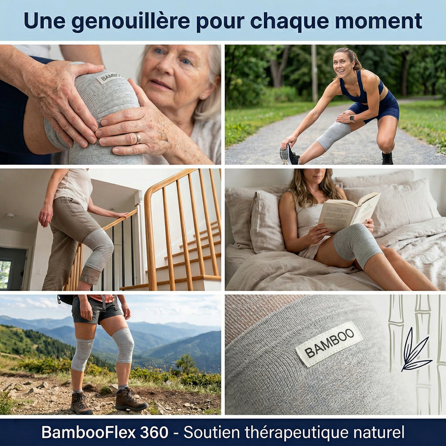 Plus qu'une simple genouillère, BambooFlex 360 est un système complet de soutien du genou conçu pour vous accompagner tout au long de la journée.