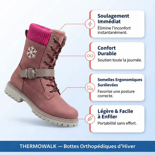 Grâce à leur semelle amortissante et leur soutien renforcé de la voûte plantaire, les Thermowalk™ soulagent les douleurs aux talons, aux genoux, et aux pieds sensibles dès les premiers pas.